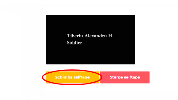 În cazul în care ți-ai urcat un selftape și nu ești mulțumit de el, ai posibilitatea de a-l schimba sau de a-l șterge cu ajutorul butoanelor “Change selftape” = “Schimbă selftape” și “Delete selftape” = ““Șterge selftape”.